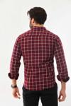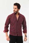 Erkek Kare Desenli Uzun Kol %100 Pamuk Gömlek 1502 Bordo