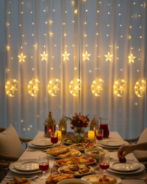 Dekoratif Ay Yıldız Perde Işığı Sıcak Beyaz Festival ve Ev Süsleme