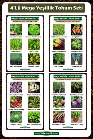 4'Lü Mega Fırsat Yeşillik Tohum Paketi, Toplam 105 Gram/24 Çeşit, Takribi 50.000 Adet Tohum