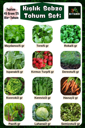 Kışlık Yeşillik Tohum Seti, 12 Çeşit Tohum, Toplam 45 Gram Takribi 25.000 Adet Yeşillik Sebze Tohumu