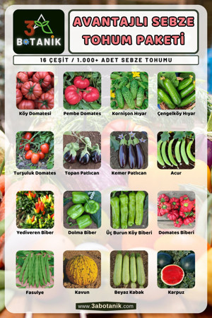 Avantajlı Sebze Tohum Paketi, 16 Çeşit Tohum, Takribi 1.000 Adet Sebze Tohum Paketi