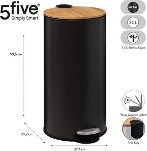 5Fıve Bambou - Siyah - 30 Lt Pedallı Çöp Kovası