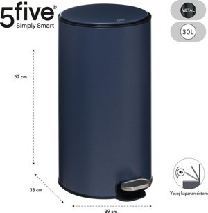 5Fıve Delta - Petrol Mavisi - 30 Lt Pedallı Çöp Kovası