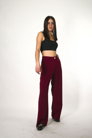 Kadın Gold Düğmeli Beli Lastikli Palazzo Pantolon