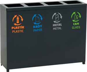 4'lü Metal Sıfır Atık Kutusu Geri Dönüşüm Çöp Kovası
