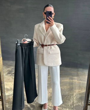 Beyaz Renk Scuba Kumaş Çimalı Tok Duruş Rahat Şık Pantolon