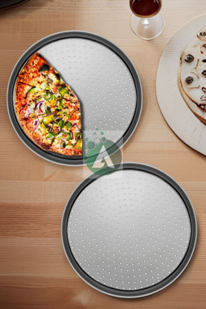 2 Adet 28Cm Delikli Pizza Tepsisi Lahmacun Pide Tepsisi 28 Cm 2 Parça Çelik Pizza Tepsisi
