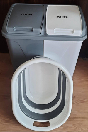 Iki Bölmeli Kirli Çamaşır Sepeti Ve Katlanır Çamaşır Sepeti 2' Li Takım