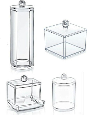 4'Lü Makyaj Temizleme Düzenleyici Kapaklı Kare Pamuk Organizer Set Pamukluk Çubuklu Pamukluk