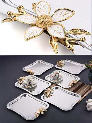 6'Lı Paslanmaz Çelik Baton Kelebekli Gümüş Çay,Kahve,İkramlık Servis Ve Sunum Tepsisi