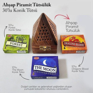 Piramit Ahşap Tütsülük Ve 3 Çeşit 10Lu Konik Tütsü Orman Esintisi