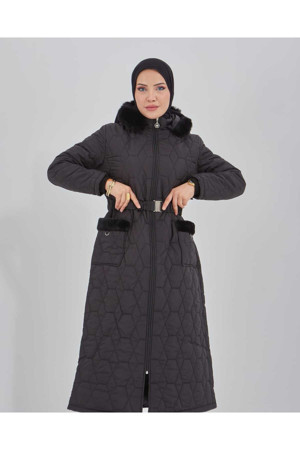 Zincir Detaylı Kuplu Belden Oturtmalı Soft Kumaş Siyah Pardesü