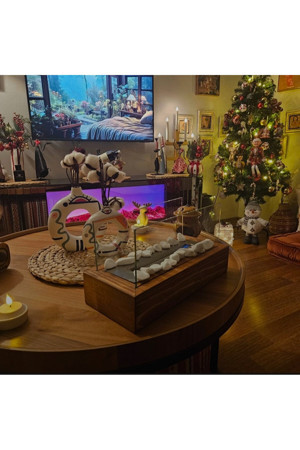 Ahşap Masa Üstü Şömine Sertifikalı Yakıt Ve Dekoratif Taş Hediyeli