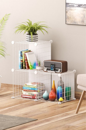 Telorans 4 Bölmeli Çok Amaçlı Dolap Organizer Raf Kitaplık Beyaz