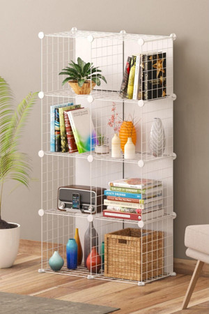 Telorans 8 Bölmeli Çok Amaçlı Dolap Organizer Raf Kitaplık Beyaz