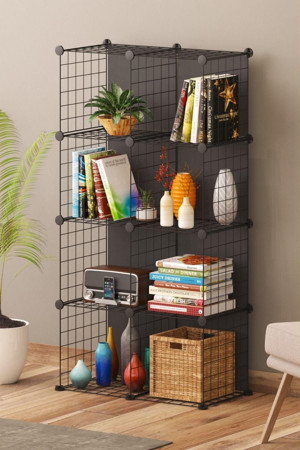Telorans 8 Bölmeli Çok Amaçlı Dolap Organizer Raf Kitaplık Siyah