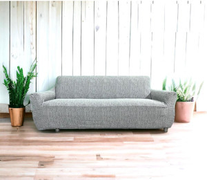 Jakarlı Streç Kaplama Maxi Çekyat Koltuk Örtüsü (3+3)-Krem YENİ