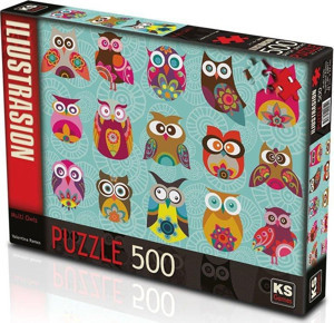 KS Puzzle 500 Parça Multi Owls Renkli Baykuşlar Kız Erkek Çocuk Oyuncak Eğitici Oyuncaklar