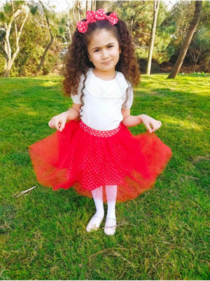 Kız Çocuk Tütü Etek- Kırmız Beyaz Puantiyeli - Astarlı