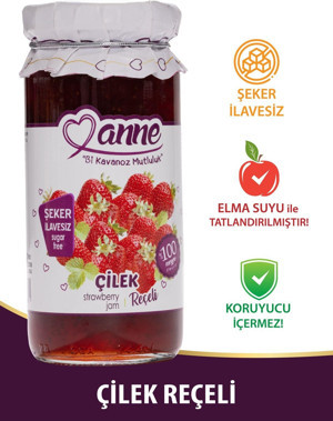 Şeker İlavesiz Çilek Reçeli 300G (Elma Suyu Ile Tatlandırılmıştır, Koruyucu İçermez)