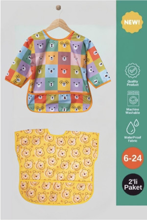 Sıvı Geçirmez Aktivite ve Mama Önlüğü 0-36 Ay Uzun ve Kisa Kol 2’li Paket Bebek Önlük