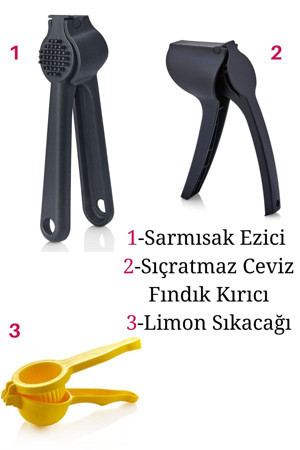Pratik Kaliteli Siyah Sarımsak Ezici, Ceviz Ve Fındık Kıracağı,Limon Sıkacağı