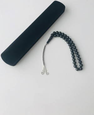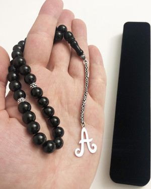 A harfli 925 ayar gümüş püsküllü ve gümüş ayraçlı oltu tespih (Kral Zincir)