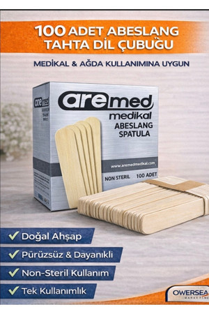 Steril abeslang, tek tek paketli, tahta dil basacağı 100'lü Kutu