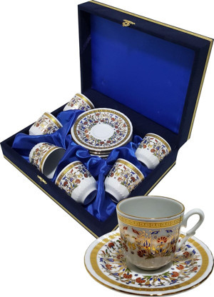 Armada Cini Ar 653 Altın Yaldızlı Porselen Fincan Takımı Kadife Kutu 6 Lı