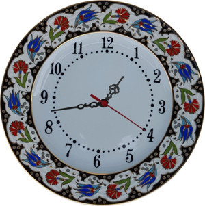 Armada Cini Prt 67 25 Cm Kırmızı Siyah Yaldızlı Lale Karanfil Desenli Porselen Cini Saat