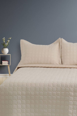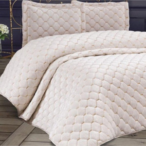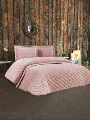 Pudra Kadife Kapitone Yatak Örtüsü