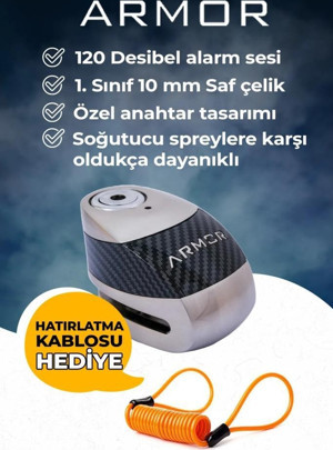 Armor 610 MVA 10 mm Alarmlı Çelik Disk Kilit Motorsiklet Kilidi+Hatırlatma Kablosu
