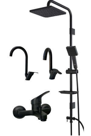 Siyah Banyo Batarya Seti Siyah Banyo Bataryası Siyah Duş Seti Siyah Lavabo Bataryası