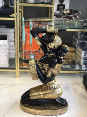 Afrikalı Yan Sehpa Camlı Sehpa Afrikalı Sehpa 60Cm X 38Cm