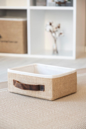 Jüt Kapaklı Dolap İçi Organizer Takı, Makyaj, Banyo, Ofis Düzenleyici Saklama Kutusu 35x26x15 cm
