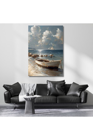 Yağlı Boya Görünümlü Kayık ve Deniz Kanvas Tablo Dijital Baskı Tablo