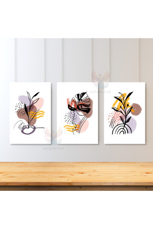 3'lü Set Kanvas Tablo Minimalist Yaprak Tasarımları Boho Modern Tablo Bohemian Kanvas Tablo