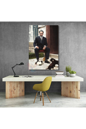 Takım Elbiseli Atatürk Kanvas Duvar Tablosu Dikey Tablo Ev Ofis Dekoru