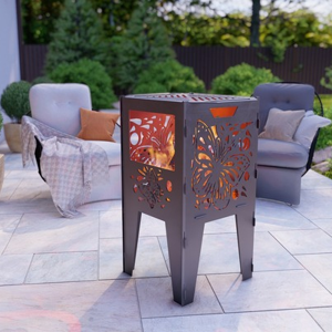 Kelebek Desenli Dekoratif kare Mangal Portatif Ateş Çukuru