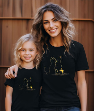 Kedi Baskılı Anne-Kız Kombin Tişört (Kombin Yapmak İçin 2 Ürün Ekleyiniz)