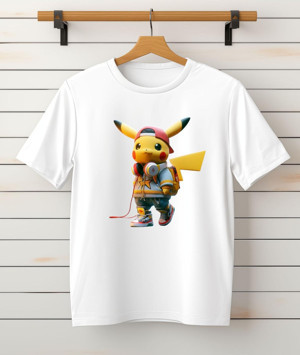 Karizma Pikaçu Baskılı Bisiklet Yaka Unisex Tişört/T-Shirt (Tek Adet Fiyatıdır.)