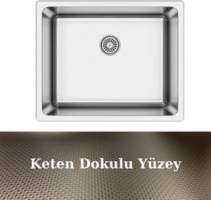 AS 359 40.50 Radus Tezgah Altı Keten Doku 304 Paslanmaz Çelik Eviye