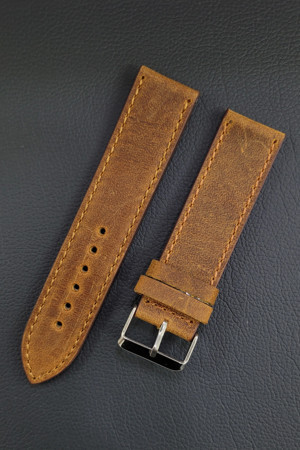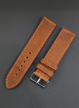 22mm Açık Kahve Taba Renk Crazy Hakiki Deri Saat Kordonu - Toka Ölçü 22mm