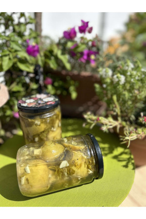 1 Lt Zeytinyağlı Baharatlı Sarımsaklı Enginar Sapı Konservesi