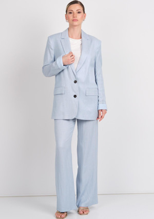 Kadın Çizgili Düğmeli Keten Ceket 0860 Mavi