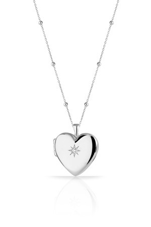 925 Ayar Gümüş Kapaklı Madalyon Kalp Yıldız Kolye