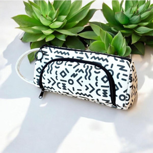 Ilgaz Geometrik Desen Büyük Geniş Organik Kanvas Pamuk Bez Kumaş Kalem Kutusu Kalemlik Makyaj Çanta