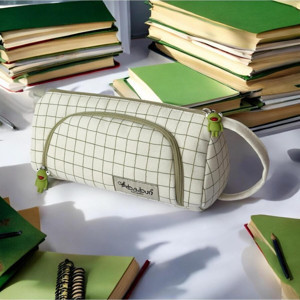 Ilgaz Yeşil Kareli Büyük Geniş Organik Kanvas Pamuk Bez Kumaş Kalem Kutusu Kalemlik Makyaj Çanta