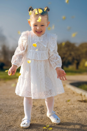 Kız Bebek Elbise Kız Çocuk Elbise Doğum Günü Parti Düğün Elbise Uzun Kol Astarlı Dantelli Bebek Giyim