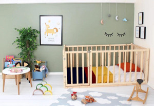 Doğal Ahşap Montessori Bebek ve Çocuk Karyolası ve Oyun Alanı